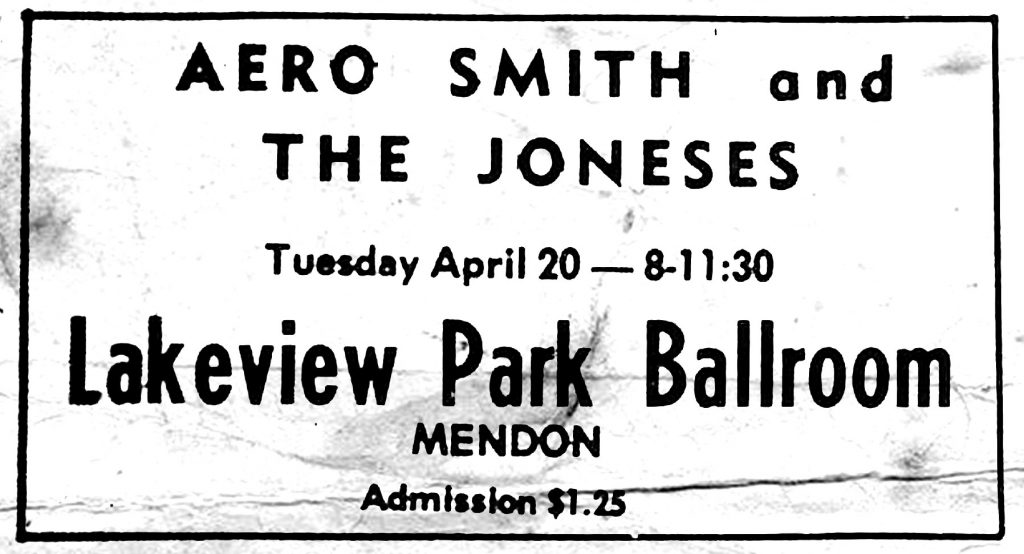 With a few weeks of rehearsals under their belt, Aerosmith played their first paying gig at the Nipmuc Regional High School’s gym in Mendon [Massachusetts] on November 6, 1970. Their set consisted mostly of covers), though six of the songs performed that night later turned up on Aerosmith albums. Steven and Joe had a big blow-up following the show with Joe being accused of playing too loud. It wasn’t the first argument on that topic, and it certainly wasn’t the last. For Tom [Hamilton, bassist], the band wanted to start out doing things their way: “We were not at all interested in going to clubs and playing five sets. So, we picked out songs that were fun for us to play and that people could dance to. We did frat parties and gigs like that. So, you first create and realize your stylistic identity by the songs that you pick to cover” (Guitar for the Practicing Musician, 5/1986).