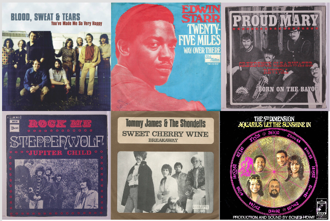 Blood, Sweat & Tears‘ self-titled second album won the Grammy Award for Album of the Year, in large part due to its three huge singles, each of which peaked at #2 on Billboard. “You’ve Made Me So Very Happy” was at #3 on WABC this week. (It would be followed by “Spinning Wheel” and “And When I Die.”