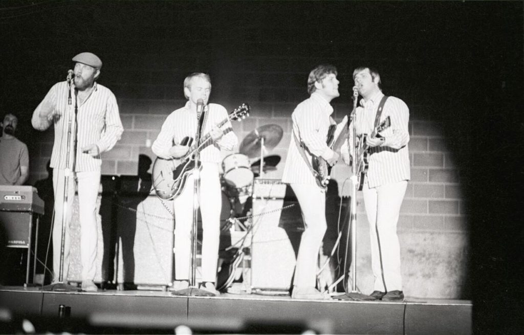 The Beach Boys in 1967 at around the time of Smiley Smile (l. to r.): Carl Wilson, Al Jardine, Brian Wilson, Mike Love, Dennis Wilson (Photo: Capitol Records; used with permission)