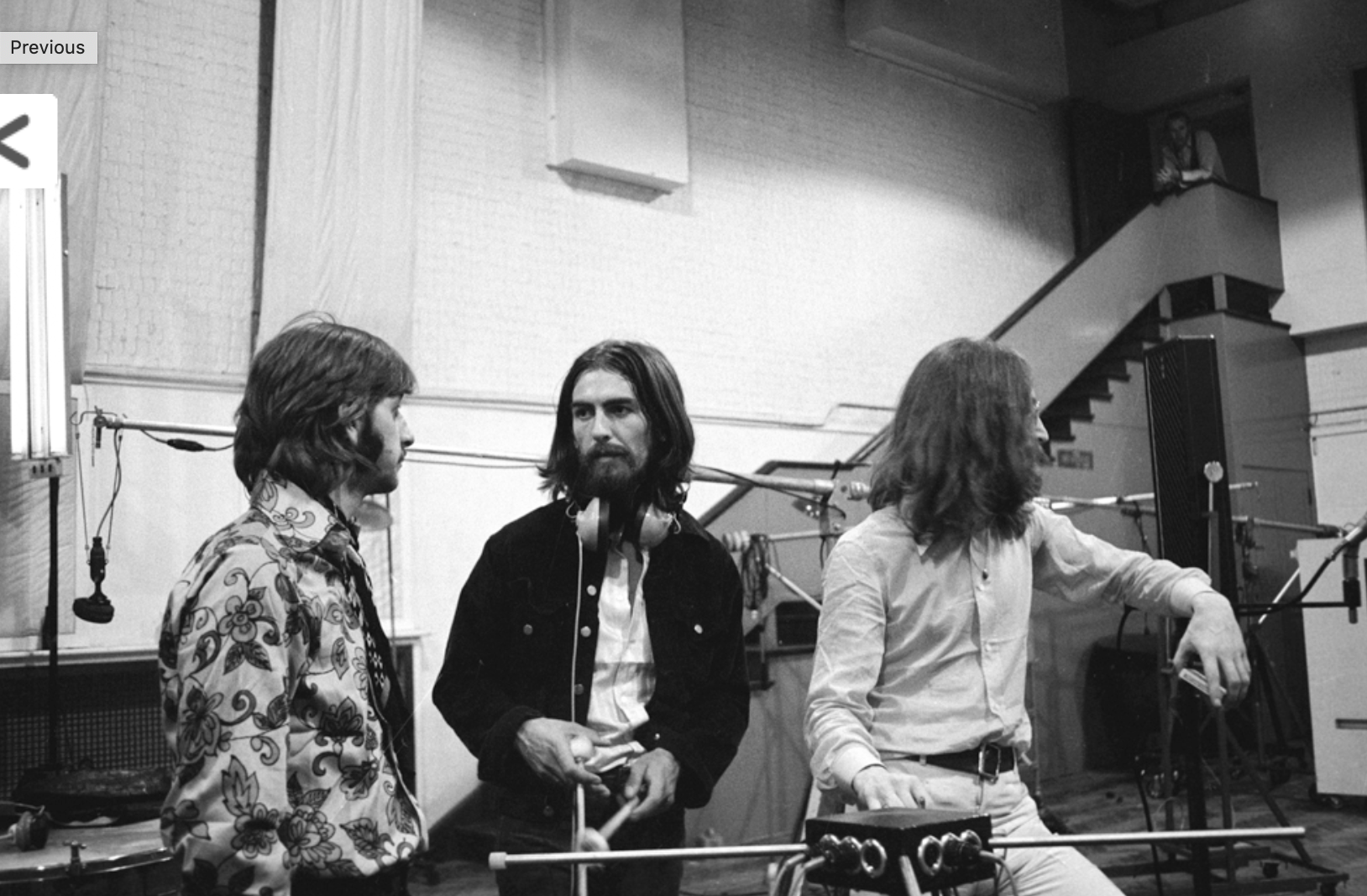 Ringo Starr, George Harrison and John Lennon inside of Abbey Road Studios, 1969 (from the Beatles’ website)