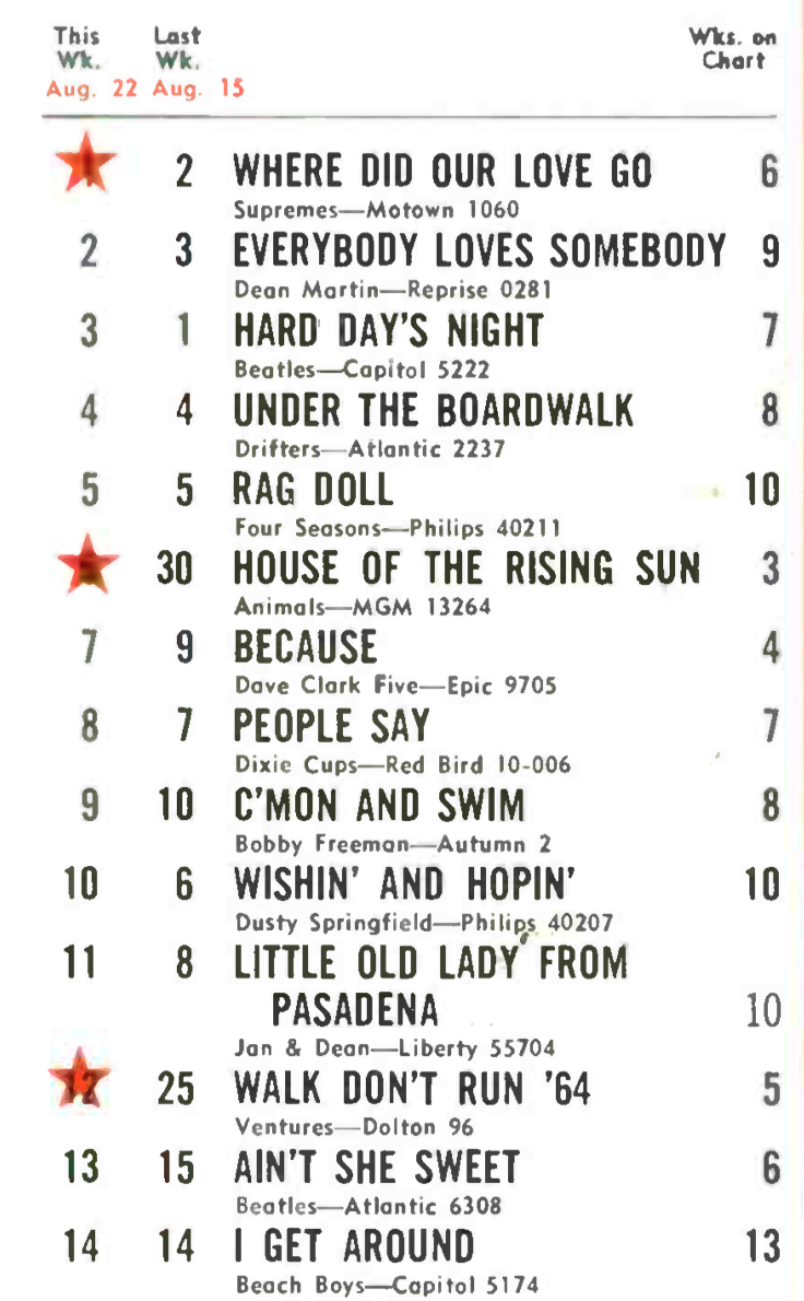 The tune in question was a cover, recorded in Germany all the way back in 1961, when Pete Best was still the band’s drummer. It hit the U.S. chart the very same day as the title song from A Hard Day’s Night, which of course rocketed to #1, but this particular song was considered a curiosity even as it climbed the charts.