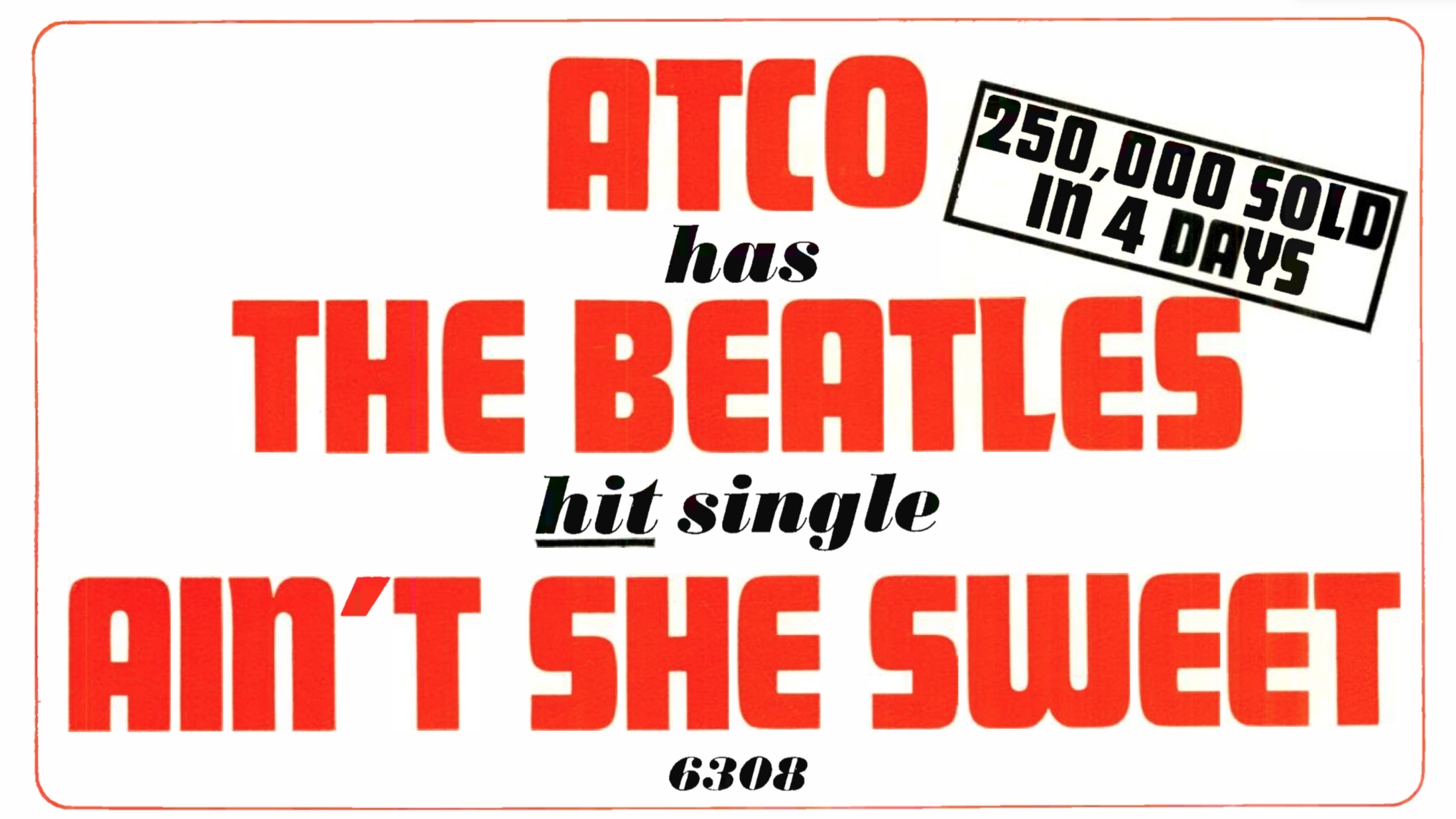 The record was “Ain’t She Sweet,” composed by Milton Ager with lyrics by Jack Yellen in 1927, sung by John Lennon 34 years later and released in America on Atco Records, a subsidiary of the R&B titan Atlantic Records, and in England by Polydor.