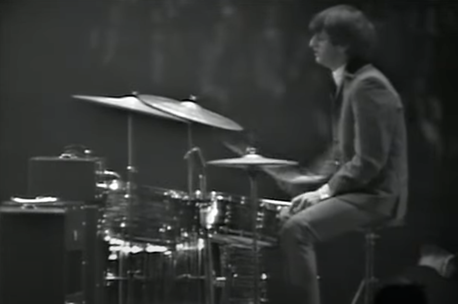 Starr’s drums were on a riser, and every few songs roadie Mal Evans would come out and help rotate the awkward contraption (with enthusiastic assistance from the drummer himself—there’d be neither pride nor a fall this night) so that another section of the audience could have a straight-ahead view. Yes, this was America, but there was still something ramshackle about the affair that had to have felt like the Cavern back home, or the Indra Club in the pre-fame Hamburg days. Perhaps the Beatles, as they played, each had thoughts pass through their minds of seeing their rock and roll heroes at the Empire Theatre in Liverpool.