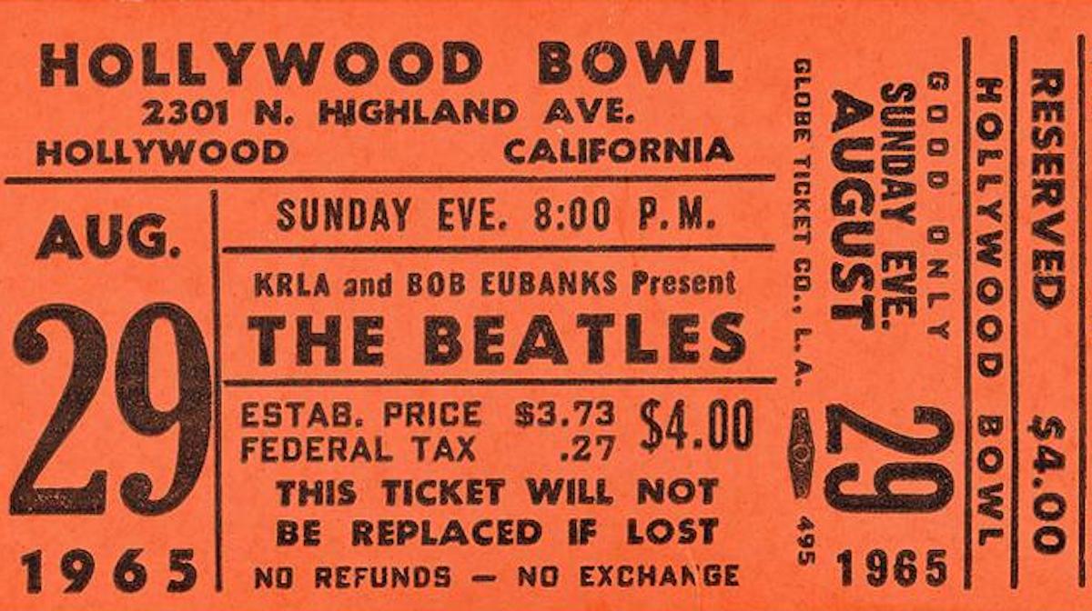 Following up on their groundbreaking 1964 sold-out concert at the Bowl, The Beatles returned for two performances the following year, August 29th and 30th. Tickets were $3, $4, $5, $6 and $7. Naturally, both shows sold out and with a capacity of just over 17,600, the band grossed $156,000 (almost $1.2 million in today’s dollars).