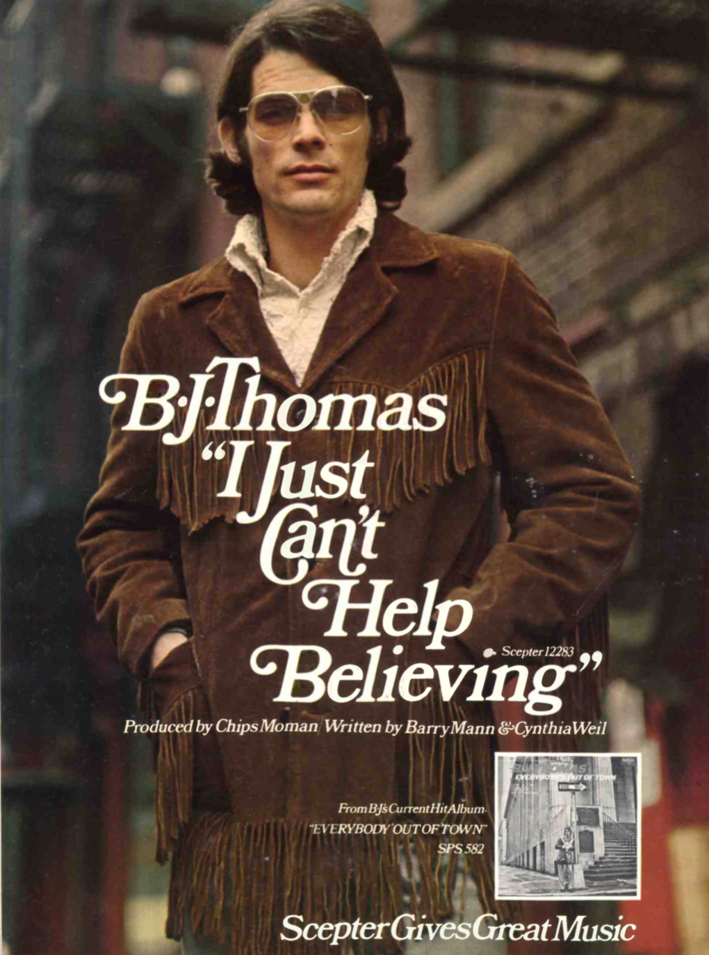 Not long after Thomas’ hit recording, it was time for a change. “I loved Memphis and I was pretty much rockin’ down there. But the owner of Scepter, Florence Greenberg, came to me and said, “BJ, would you move up to New York City? Because if you do I think I can get you a session with Burt Bacharach and Hal David.”