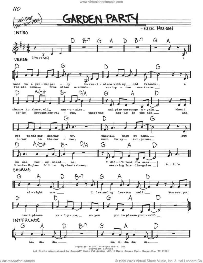 Regardless, “Garden Party,” with its telling chorus—“But it’s all right now/I learned my lesson well/You see, you can’t please everyone, so you gotta please yourself”—gave Rick Nelson his next single in the summer of 1972 and the title track for his next album. The single, set to an easygoing country-folk melody, caught on, peaking at #6 in the Billboard Hot 100, while the Garden Party album topped out at #32, Nelson’s highest placement there since 1964.