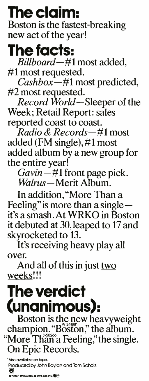 This ad from the band appeared in the Dec. 25, 1976 issue of Record World.