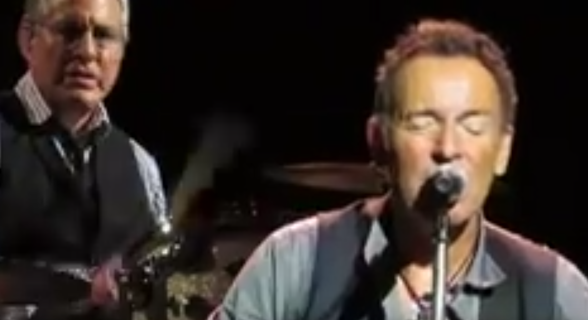 Lots of songs ran together – separated by Springsteen’s ecstatic “1-2-3-4!” count – but occasionally he stepped back to explain context. “I Wanna Marry You,” he said, was “a daydream … imagining the life of a person… that’s the life without consequences that doesn’t exist… a song of youth, imagining it in all of its glory and sweetness… It’s not the real thing, but you gotta start someplace.” The woman in that song does not fare well. “In the end true love can’t be no fairy tale,” sang Springsteen.