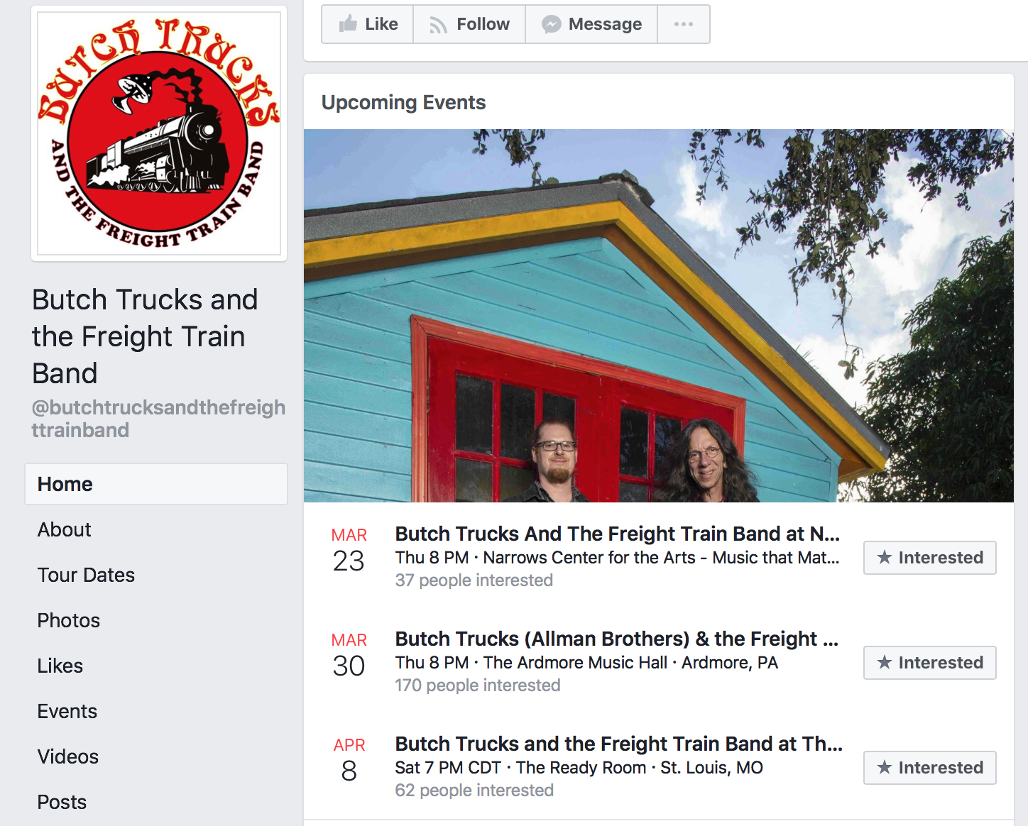 Trucks had a full slate of tour dates planned with his band Butch Trucks and the Freight Train. A section of that itinerary, taken from the band’s Facebook page, is below.