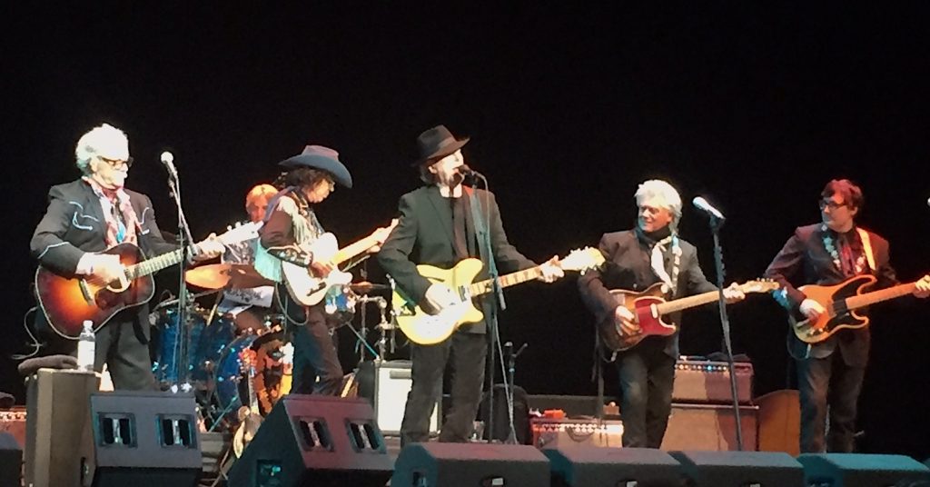 The Byrds’ Sweetheart of the Rodeo concert at The Egg, Albany, N.Y., Sept. 17, 2018. Left to right: Chris Hillman, Harry Stinson, Kenny Vaughan, Roger McGuinn, Marty Stuart, Chris Scruggs. (Photo: Jeff Tamarkin; used with permission)