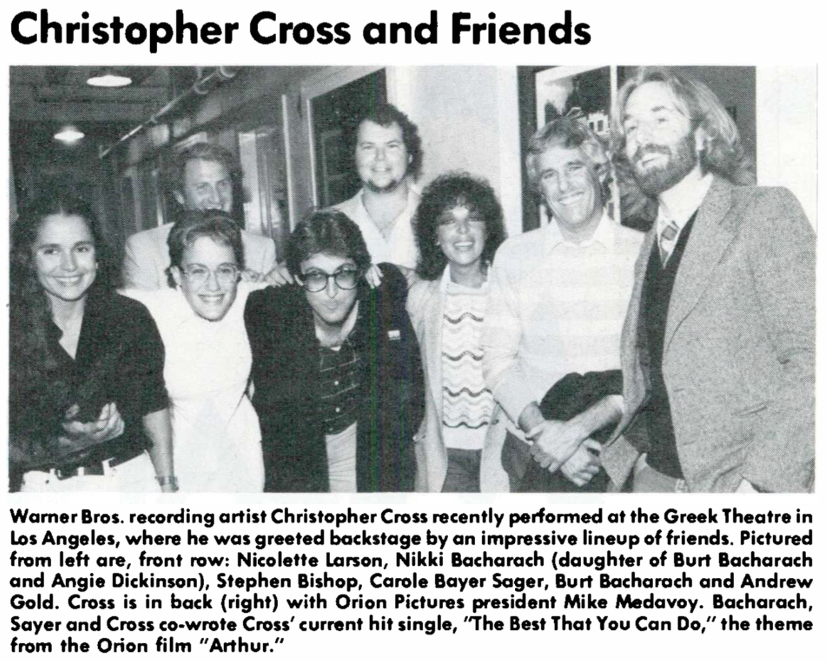In July 1979, hunkered down at WB’s Amigo Studios in North Hollywood, the four band members were supplemented by a raft of top session players and singers, under the direction of producers Michael Omartian and Michael Ostin. Recording on the new 3M Digital Recording System, the eponymous Christopher Cross LP took shape quickly. Released on Dec. 20 of that year, it began throwing off hit singles immediately, moving toward sales of five million copies in the U.S. alone and still counting.