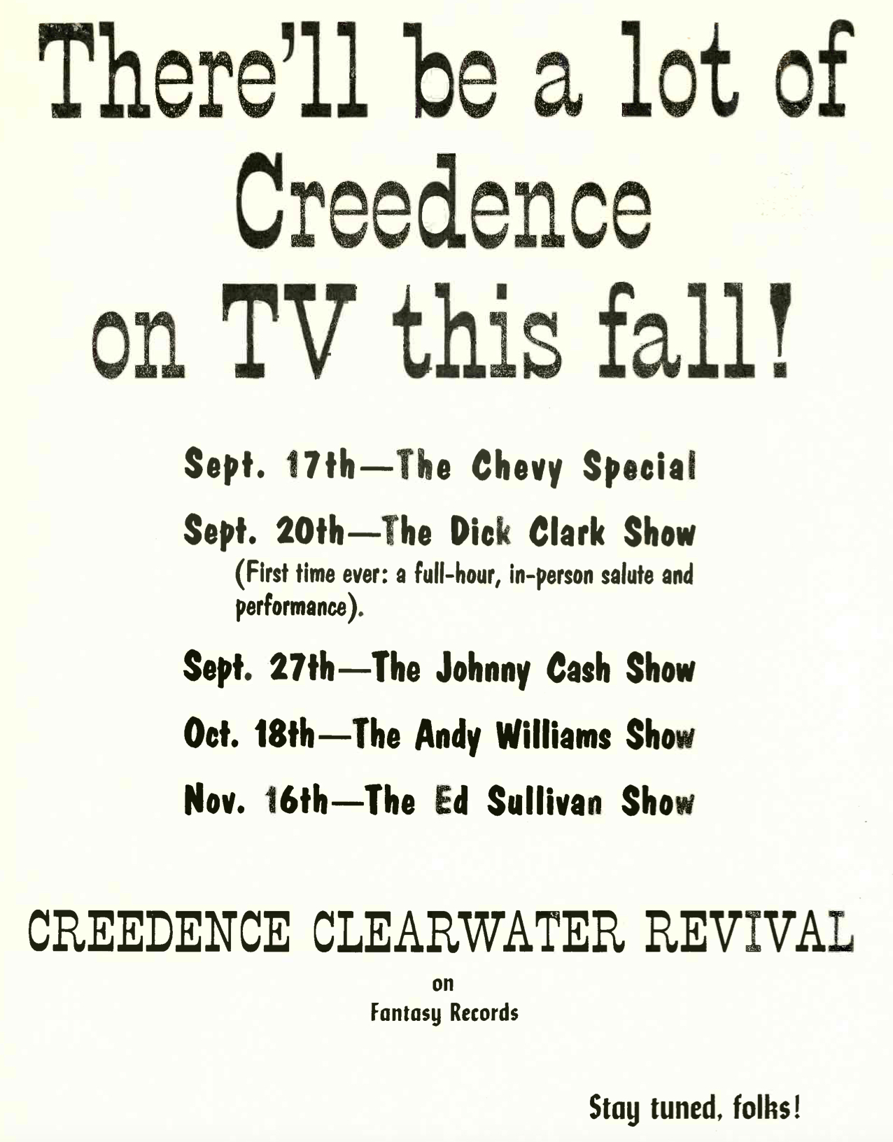 To give you a sense of what the band was doing musically, here’s a look at CCR’s 1969 release schedule: