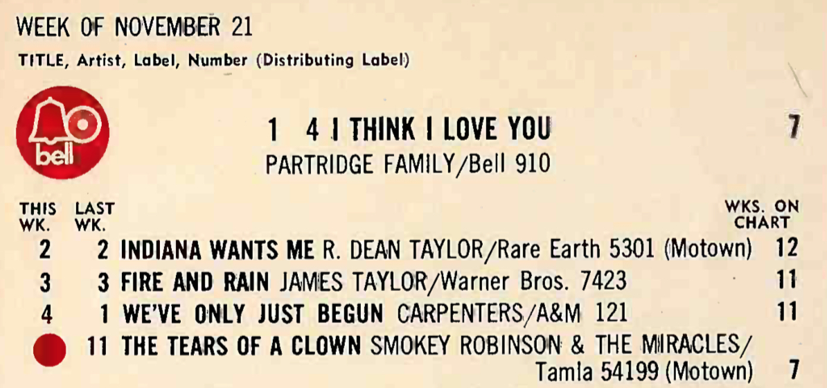 By coincidence, Nov. 21 was the anniversary of his biggest single—the Partridge Family’s “I Think I Love You”—hitting #1 on the Hot 100 in 1970.