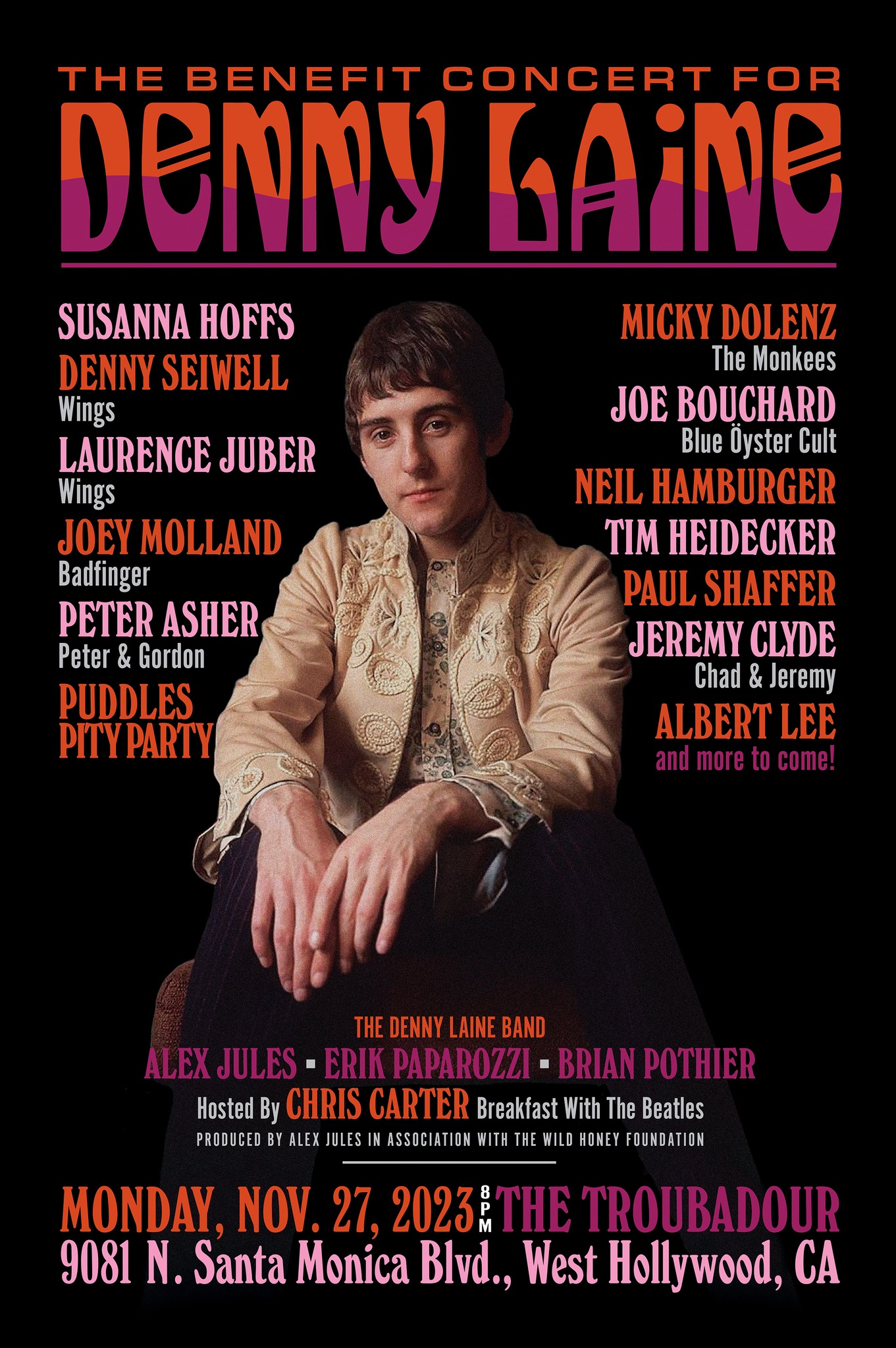 No, he didn’t show. But if rumors that Paul McCartney would perform at the Benefit Concert For Denny Laine held November 27, 2023, at the iconic Troubadour in West Hollywood proved unfounded, the ex-Beatle was there in spirit, with both songs and special guests serving as a reminder that Laine was first and foremost a loyal sideman to McCartney and his band, Wings.