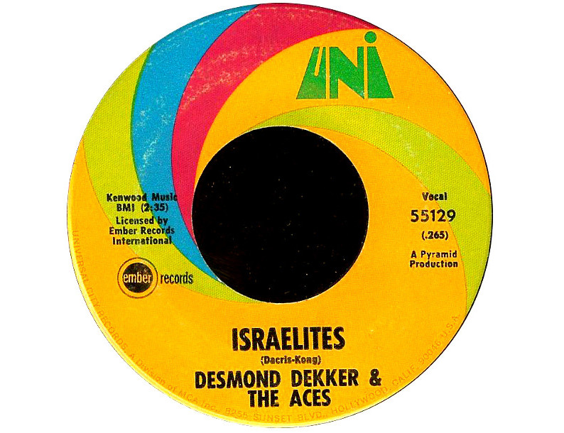 The song was written in 1968, its authorship shared by Dekker and Leslie Kong, a record label owner and budding record producer in Jamaica who gave the young Jimmy Cliff his start. (Kong would go on to become one of the most renowned producers on the island.) With the success of “Israelites,” Kong and Dekker broke into the international market in a big way: the single reached #1 in the U.K., #9 in the U.S. in late June 1969 (on Uni Records, home of the Strawberry Alarm Clock) and also made the top 10 in more than a dozen other countries, including Canada, Australia and several European nations. “Israelites” was a genuine worldwide hit,