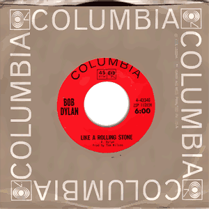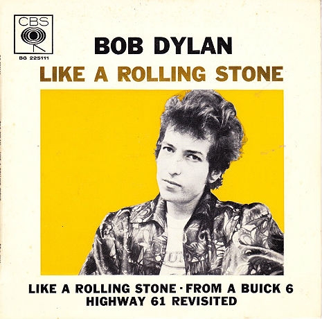 Dylan’s “Like a Rolling Stone” is often considered the greatest rock song of all time. This is one of several variations on the single’s picture sleeve.