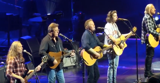 Save for a special one-off, invitation-only gig set for Nashville’s storied Grand Ole Opry House tonight (Oct. 29), The Eagles have now completed their six-date mini-tour dubbed “An Evening With the Eagles.” The final show took place Friday night (Oct. 27) at Little Caesars Arena in Detroit, where the reconstituted band—with Deacon Frey (son of the late Glenn, a Detroit native) and country star Vince Gill now firmly embedded into the lineup—wowed the local fans.