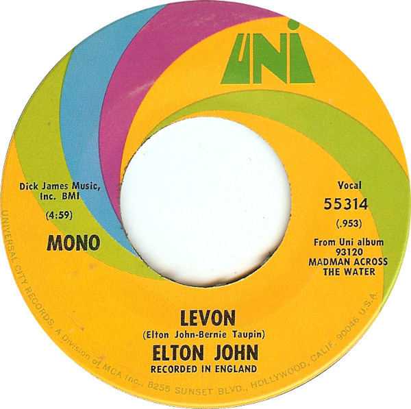 The album’s first single, released on Nov. 29, 1971, was “Levon,” and though it peaked in the U.S. at “just” #24, it was his second-highest at the time, and fared better than the album’s now-better known single, “Tiny Dancer,” which only reached #41. (None of the songs were released as singles in the U.K. at the time.)