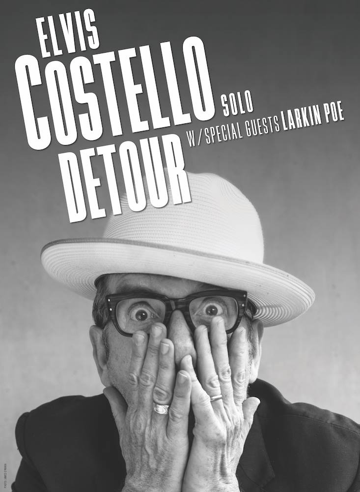 After he finishes his European tour, Elvis Costello‘s career-spanning Detour concert program returns to the U.S. for dates this fall. The initial performances are mainly solo guitar/piano shows that will again feature the Atlanta roots rock duo of Rebecca and Megan Lowell, know as Larkin Poe, as guests on several songs. He follows that with dates with his band The Imposters.