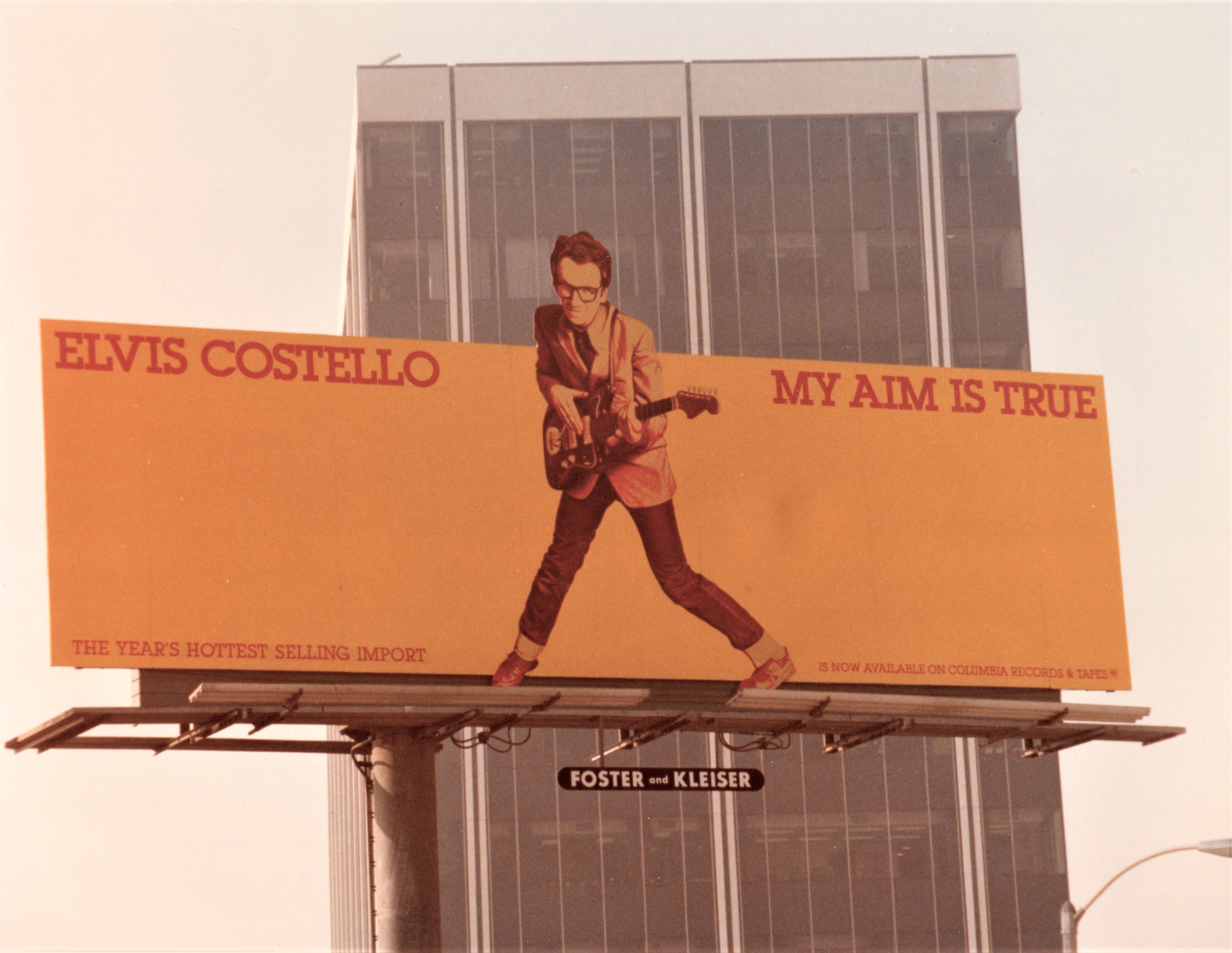 Wingate was given a significant marketing budget, part of which he used to buy a pricey billboard on Los Angeles’ Sunset Blvd., normally reserved for superstar acts. He created plenty of merchandise—like a My Aim Is True dartboard—for the Columbia and CBS Records Distribution field staff to use with their constituents at radio and retail.