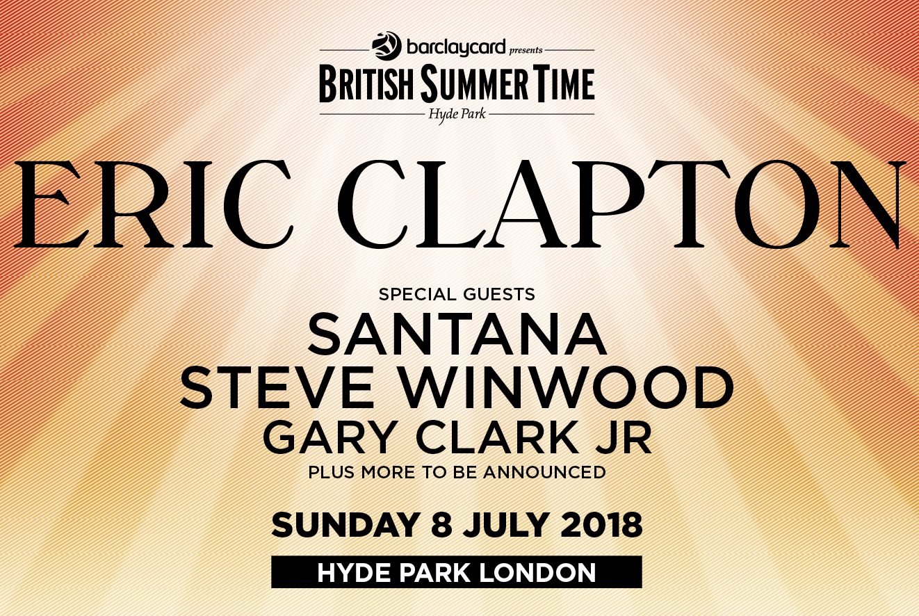 On Nov. 27, the British Summer Time concert series announced that Clapton will headline a very special concert in London’s Hyde Park on July 8, 2018. Joining him will be his one-time bandmate Steve Winwood, Santana and Gary Clark, Jr. The announcement promises even more acts will be added to the bill. (On June 7, 1969, Blind Faith famously made their live debut at London’s Hyde Park.)
