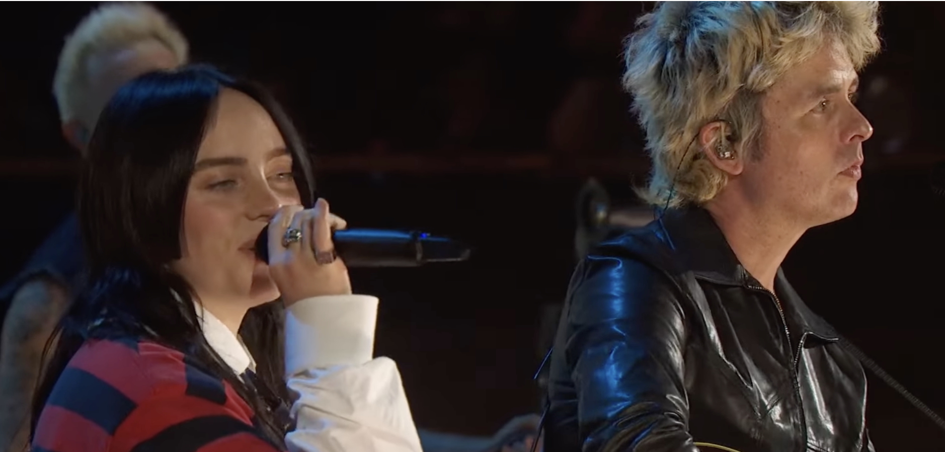 The evening began at the Kia Forum with Green Day performing “Last Night on Earth” and halfway through they were joined by Billie Eilish. “From the bottom of our hearts, we love you, Los Angeles, and we’ve got your backs,” said frontman Billie Joe Armstrong. The band followed with “Still Breathing” and “When I Come Around.”