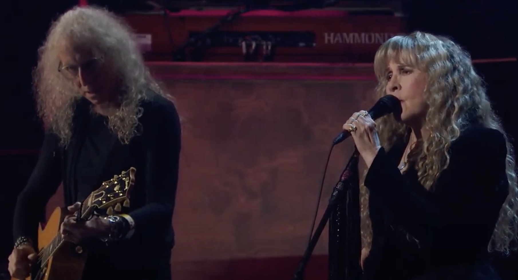 Stevie Nicks with her longtime musical director, Waddy Wachtel, performing “Landslide,” at Kia Forum