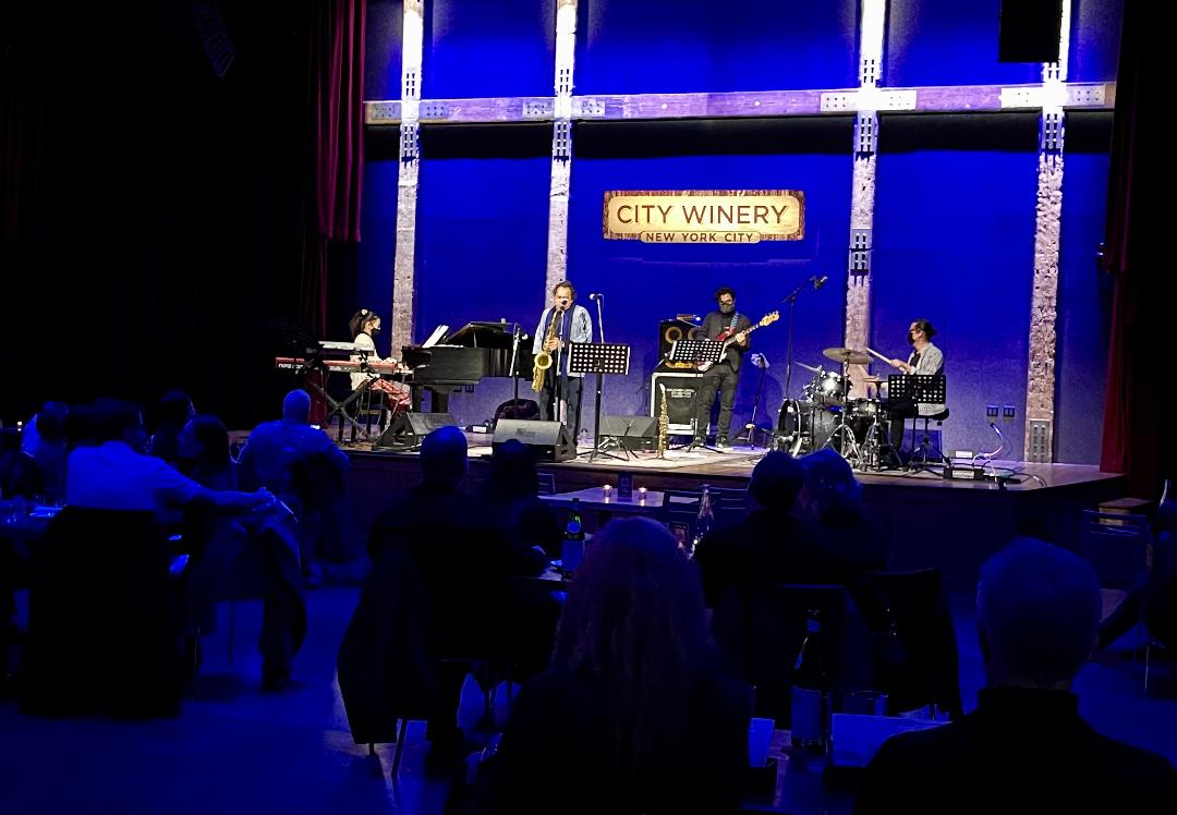My 2021 entertainment calendar was empty when on Thursday I got an email from City Winery NYC inviting their Vinophile members to a free concert the very next evening at their brand new location along the Hudson River. Like all such public events, the capacity was limited to 20 percent. Though I wasn’t familiar with the act, members of the group Groove Collective, I didn’t hesitate to click on the link and reserve a pair of seats.