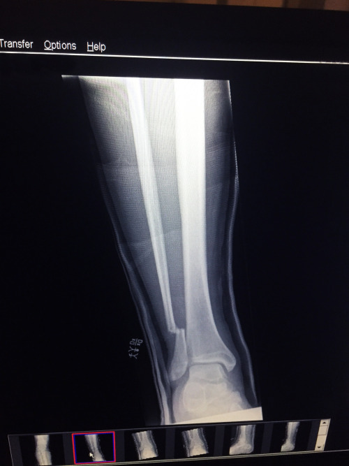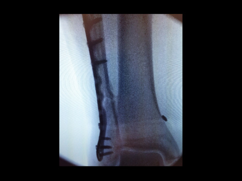 After receiving x-rays following the Gothenburg show that confirmed a broken fibula, the band cancelled dates at the Pinkpop Festival in the Netherlands (6/14) and St. Gallen, Switzerland (6/16). Grohl flew to London for further x-rays and an MRI followed by an operation on Monday (6/15) in which a plate held in place by six screws was attached to the bone.