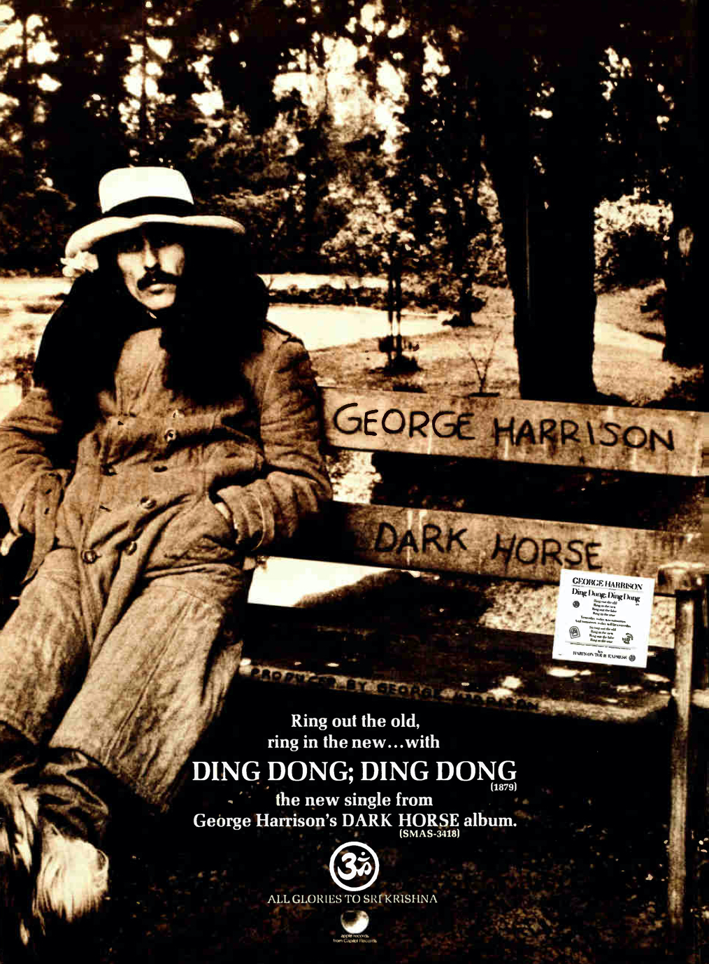 The George Harrison song, “Ding Dong, Ding Dong,” was included on his fifth studio album, 1974’s Dark Horse (and was also on 2014’s Apple Years collection). It’s always worked as a way to herald the beginning of a new year.