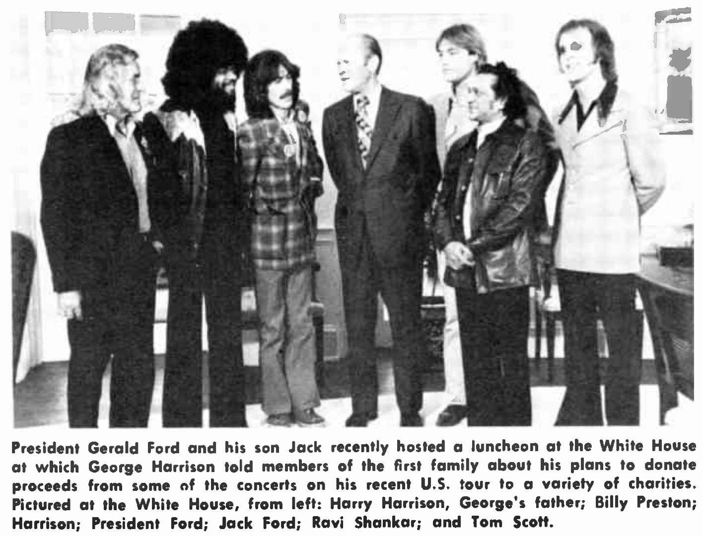 On December 13, 1974, Harrison visited the White House for a meeting with President Gerald Ford.
