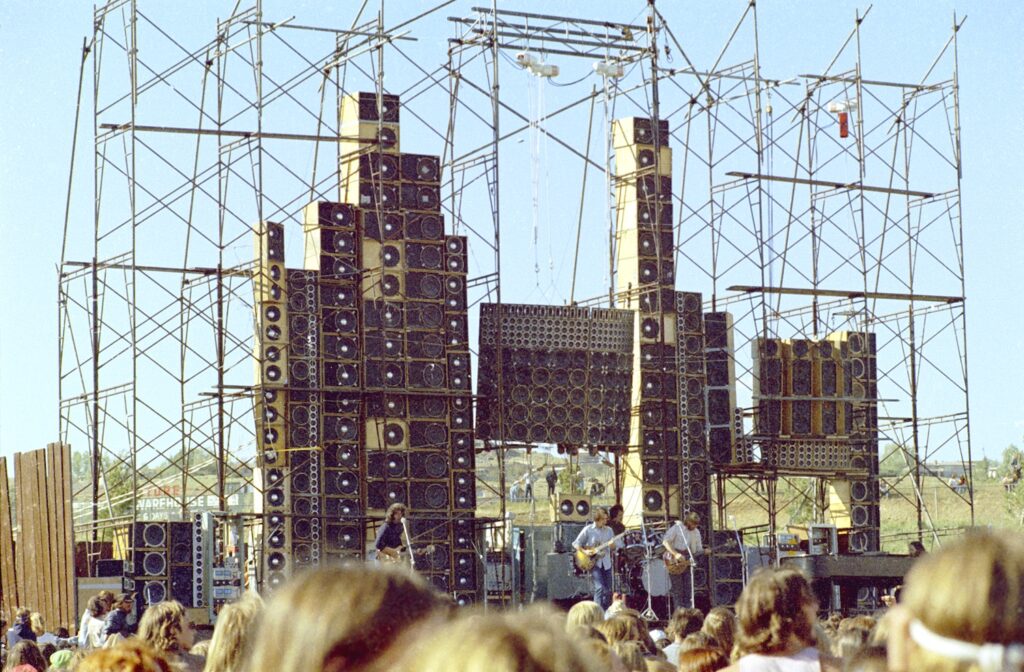 Grateful Dead’s 1974 Reno setup, with their famous “Wall of Sound” (Photo by © Richie Pechner, used with permission)