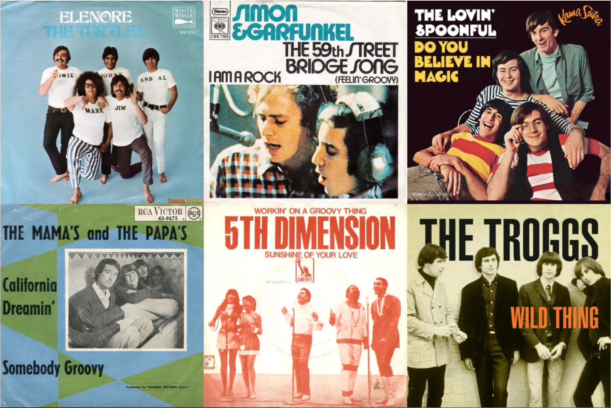 Songwriters of the era tucked it into many a tune, some of them big hits, others not so much. Here are some of our favorites, starting with a handful that know a groovy rhyme when they see one.