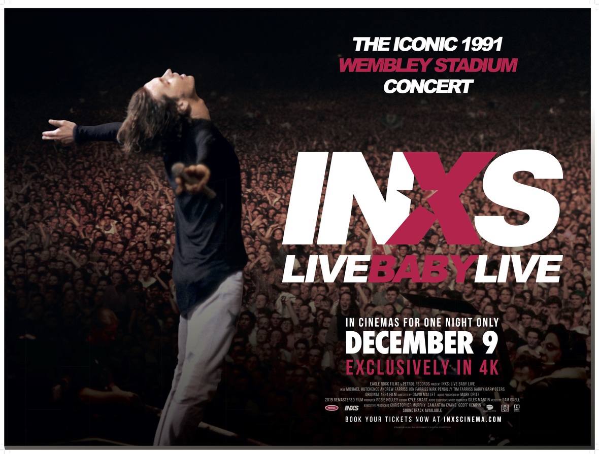 INXS’s legendary 1991 Wembley Stadium concert is coming to theaters for the first time. The show, INXS Live Baby Live, has been fully restored from the original 35mm print to create a new widescreen 4K Ultra HD version, and the film also now includes a previously unseen “lost” track and a brand new Dolby Atmos audio mix by the band’s executive music producer Giles Martin and Sam Okell, created at Abbey Road Studios.