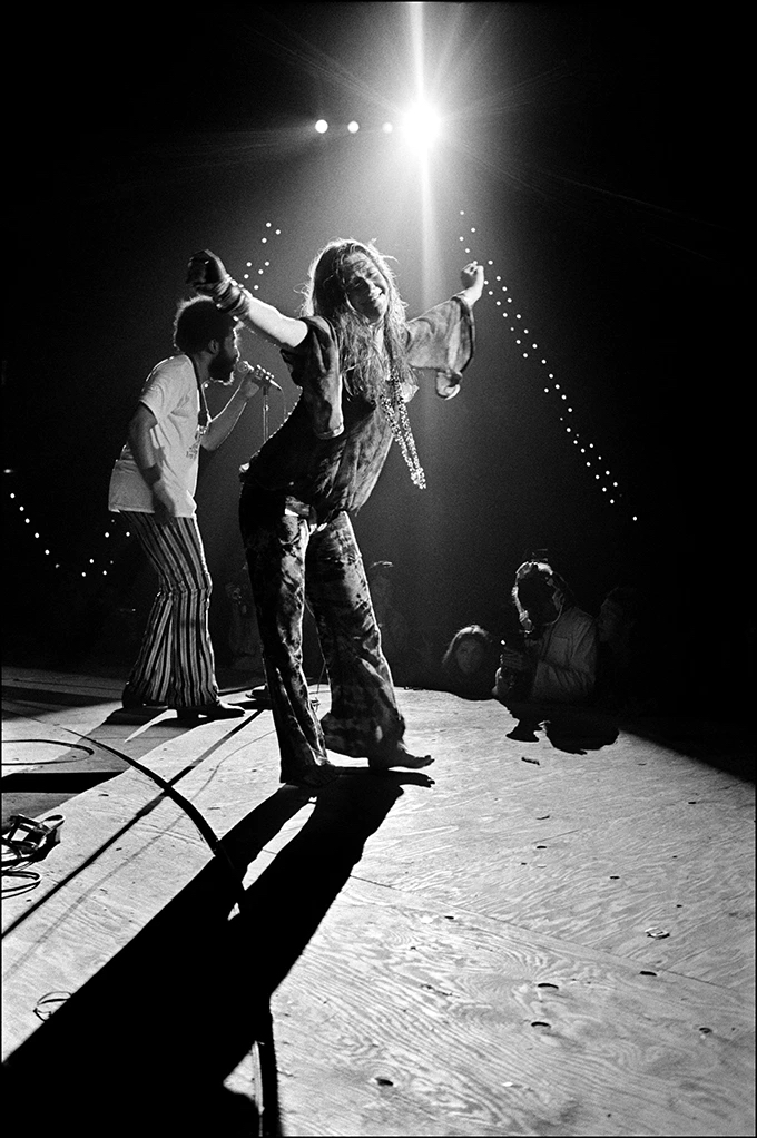 Janis Joplin in the Performer’s Pavilion at the 1969 Woodstock Festival (Photo © Elliott Landy. Used with permission)