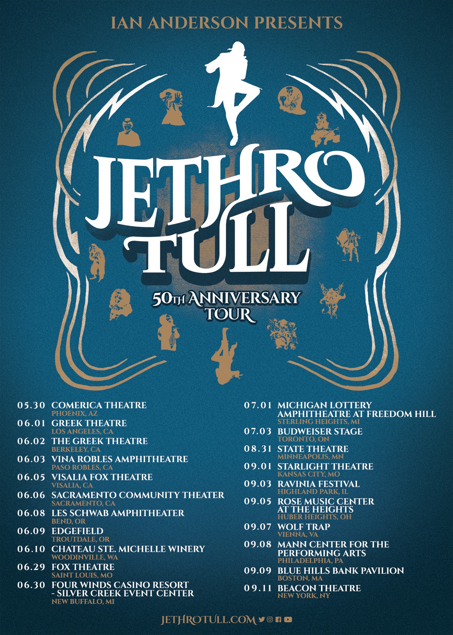 It was on Feb. 2, 1968, at the Marquee Club on London’s Wardour Street, that Jethro Tull first performed under that name. To celebrate their golden anniversary, founder/bandleader Ian Anderson will present “50 years of Jethro Tull” throughout 2018. More than 20 new North American dates have now been added to the band’s itinerary. Scroll down for the full schedule.