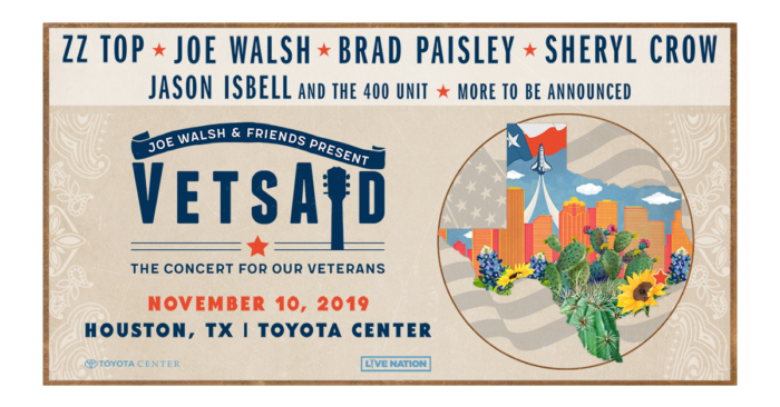 Joe Walsh and VetsAid, his national 501(c)3 non-profit veterans’ organization, today (Aug. 12) announced the lineup and onsale date for their third annual music festival. VetsAid 2019 will feature sets from ZZ Top, Brad Paisley, Sheryl Crow, Jason Isbell & the 400 Unit and Joe Walsh and will take place on Nov. 10, on the eve of Veterans Day, at the Toyota Center in Houston, Tex.