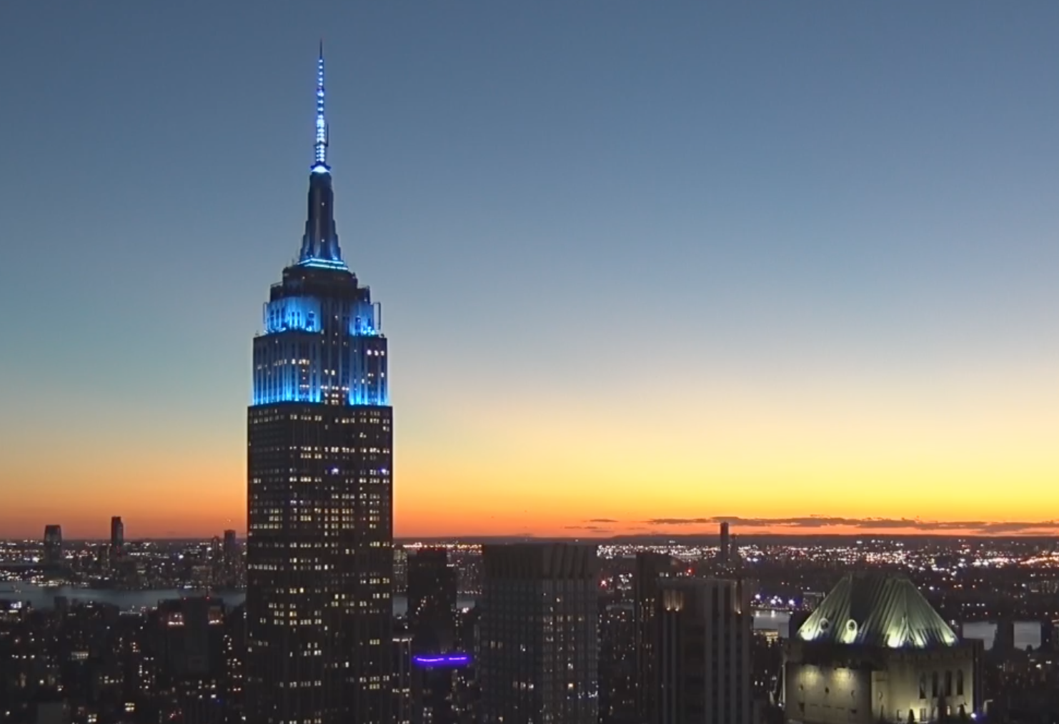 The Empire State Building, in blue, to honor John Lennon, on his birthday, October 9, 2020, at 6:50 p.m. via EarthCam