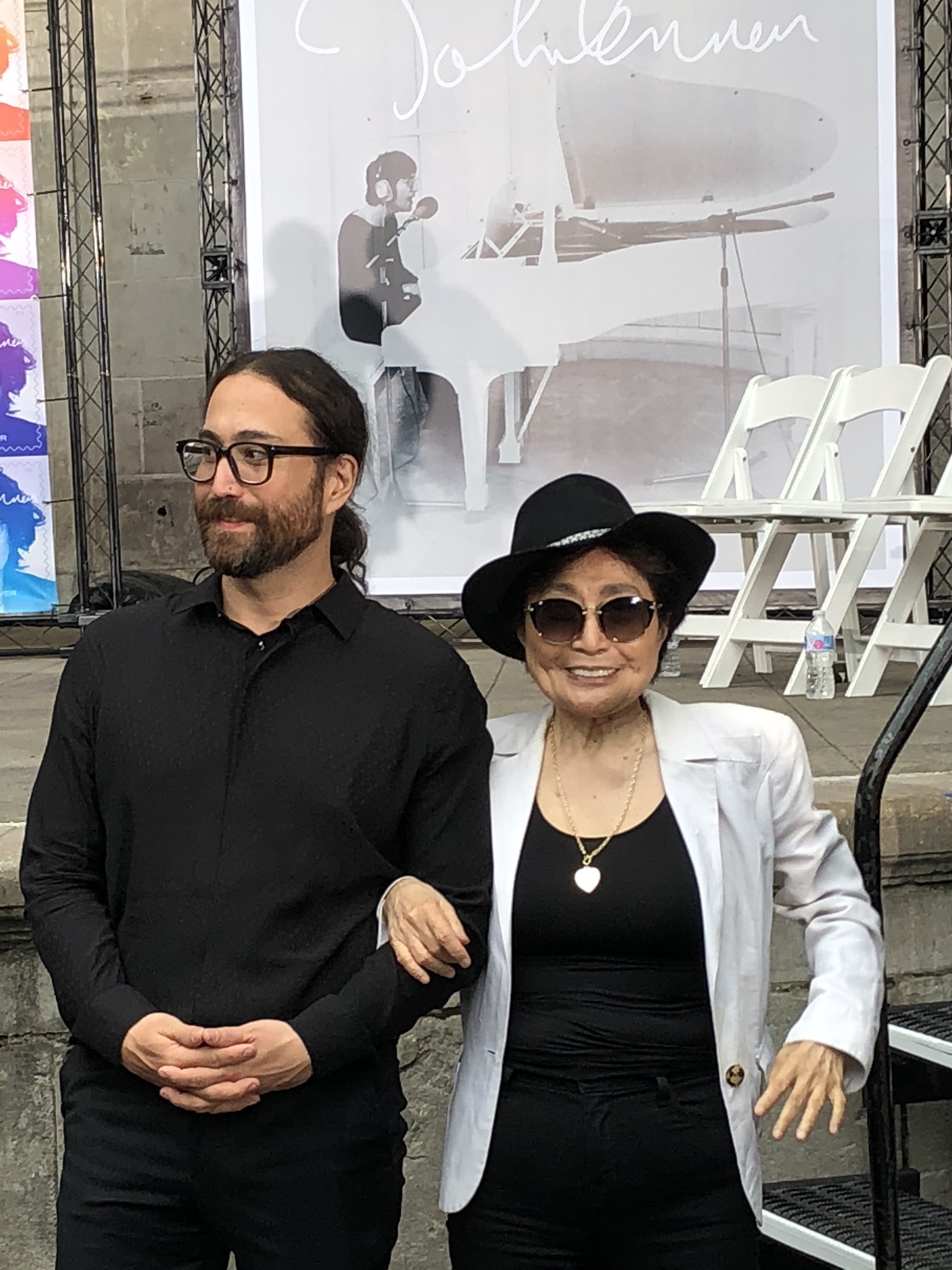 Sean Lennon and Yoko Ono at the stamp ceremony in NYC’s Central Park (Photo: Blu Titan; used with permission)