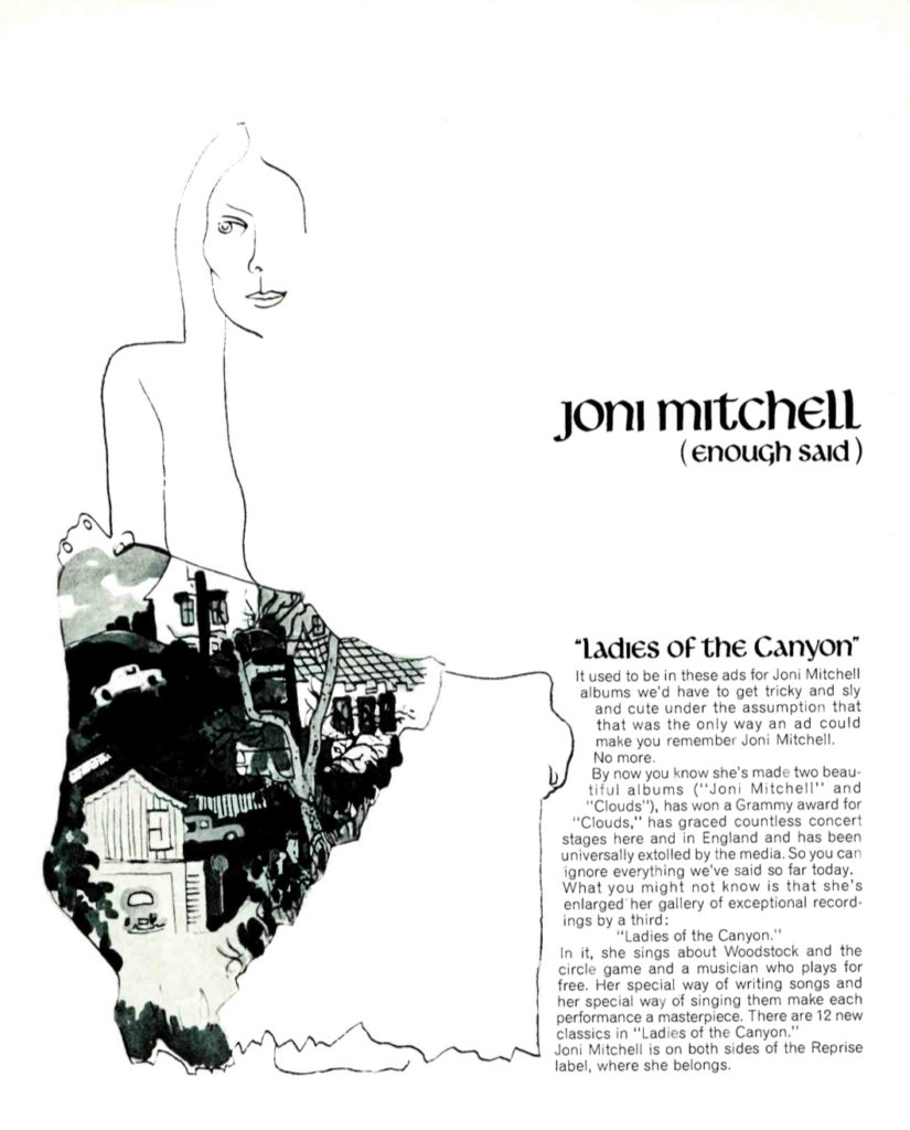 An ad for Ladies of the Canyon ran in Record World magazine in April 1970