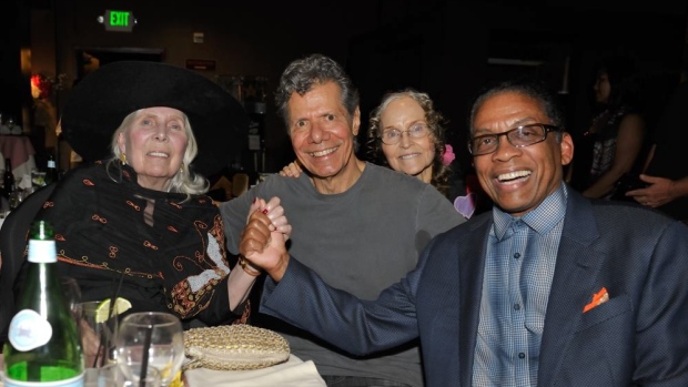 The caption to the photo of the four, posted on her website reads, “We are thrilled to see Joni out and about again! Last night she attended a Chick Corea concert at the Catalina Bar and Grill in Los Angeles. L-R: Joni, Chick Corea, Gayle Moran Corea, Herbie Hancock.”