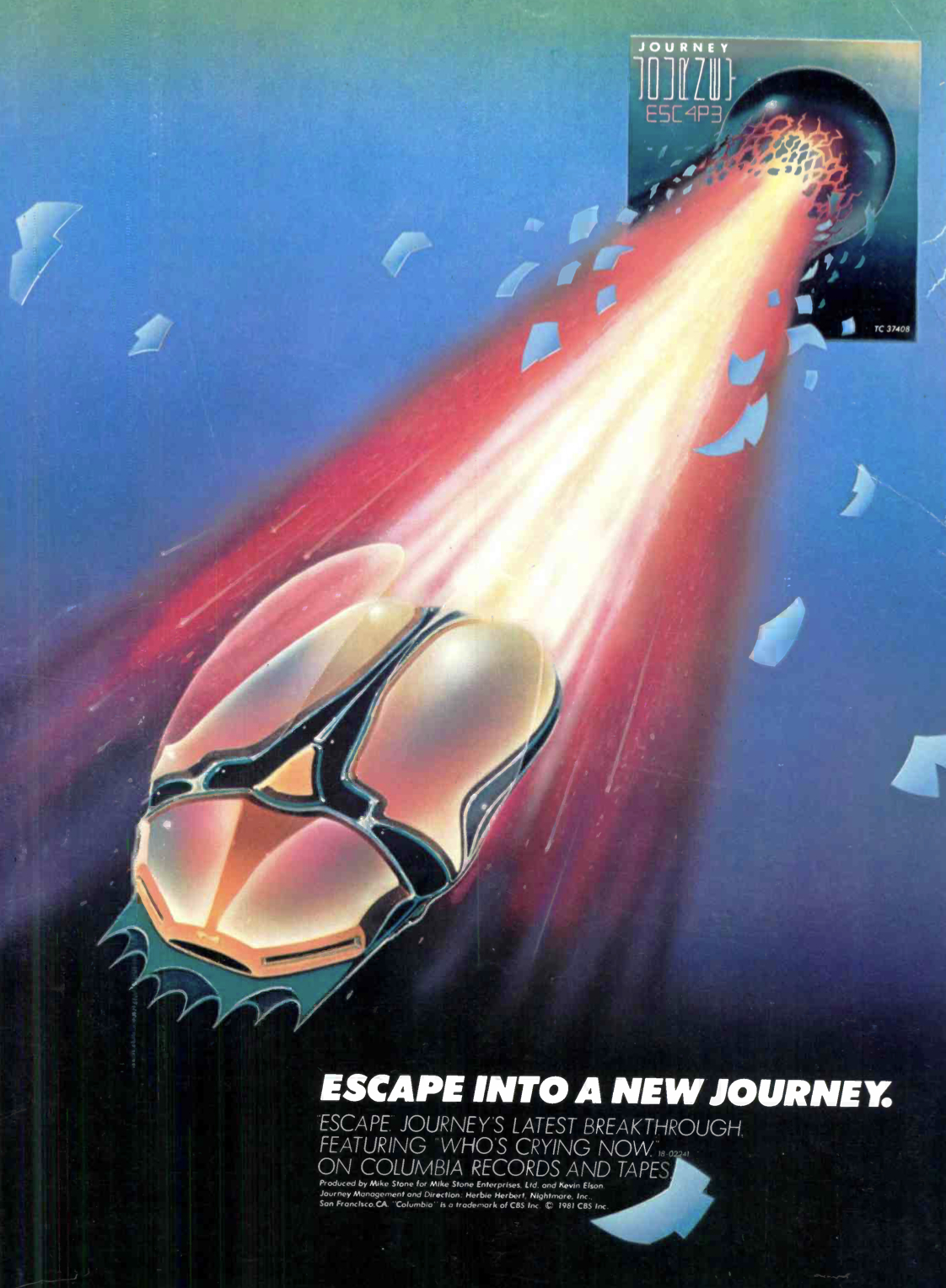 Oddly enough, the first single ahead of the 10-tracklist Escape (or stylized as E5C4P3 on the album jacket) was the power ballad “Who’s Crying Now,” begun by Perry on a car drive over to Cain’s house and completed by Schon’s extended melodic outro solo. The lyrical story was heading in a slightly different direction away from the hot breath fumbling of “Lovin’, Touchin’, Squeezin’,” with Perry as a third-party narrator, reminiscing over a pair of lost souls.