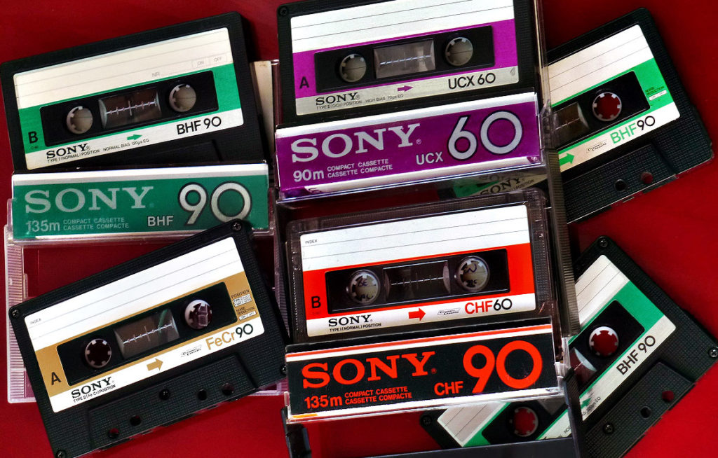 The format became ubiquitous as cassette recorders and players of all kinds flooded the market. The cassette “mixtape,” which allowed users to choose music from favorite recordings and arrange songs in an order they preferred, was considered revolutionary—prior to that, record companies created albums with specified sequences and users had few options to rearrange music to their personal taste. The SONY Walkman, introduced in 1979, allowed fans to listen to music on the go, with headphones, a precursor to today’s cellphones. It, too, became ubiquitous.