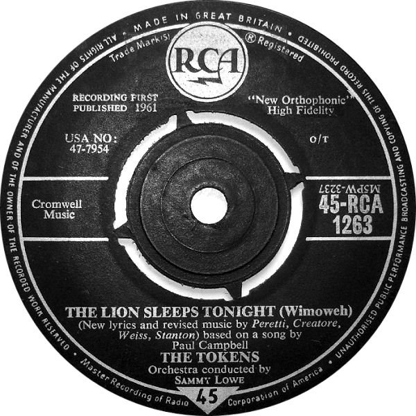 In 1961, RCA producers Hugo Peretti and Luigi Creatore, along with lyricist George David Weiss, retooled the song for the pop audience, giving it the name “The Lion Sleeps Tonight” based on the original Zulu story of Linda’s song. Soprano singer Anita Darian was brought in to add the wailing high notes and “Lion…,” credited to Peretti, Creatore, Weiss and the pseudonymous Albert Stanton (actually Al Brackman, Pete Seeger’s business partner), was released as the B-side of a song called “Tina.” (Linda was denied a credit on the hit, later triggering a huge copyright suit when his composition was used in The Lion King. It’s been recorded under its various titles by dozens of artists. Linda’s credit has since been restored to all versions of the song.)