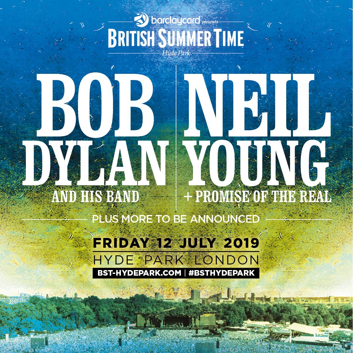 Neil Young and Bob Dylan during their sets at London’s Hyde Park, July 12, 2019.