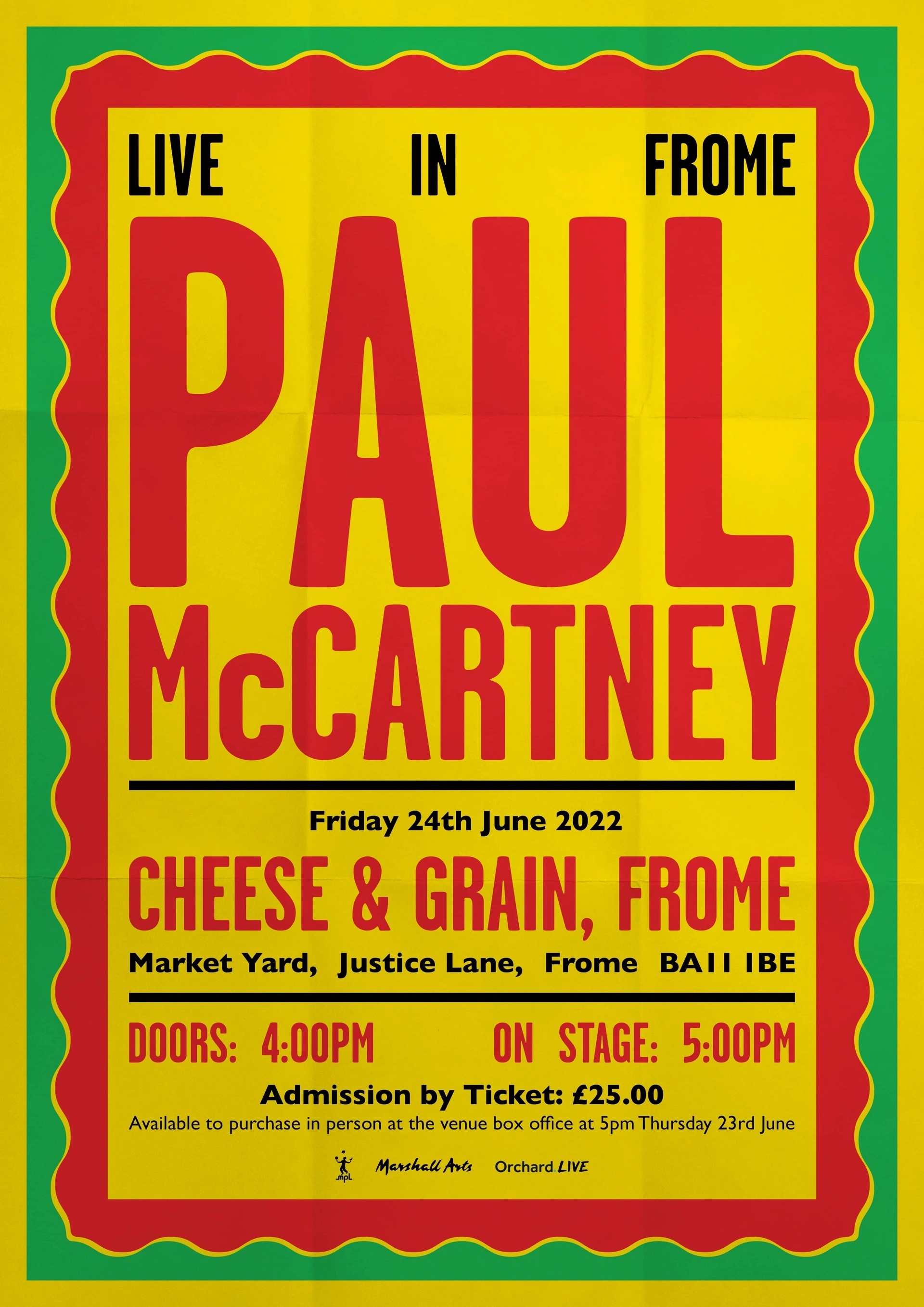 Sadly if you weren’t there in minutes you were disappointed in the long and windy queue for surprise tickets to see Sir Paul McCartney play a one off warm up gig at Frome’s Cheese & Grain. You had to be there early. #Frome#Nubit#beatle pic.twitter.com/5txopANJVb