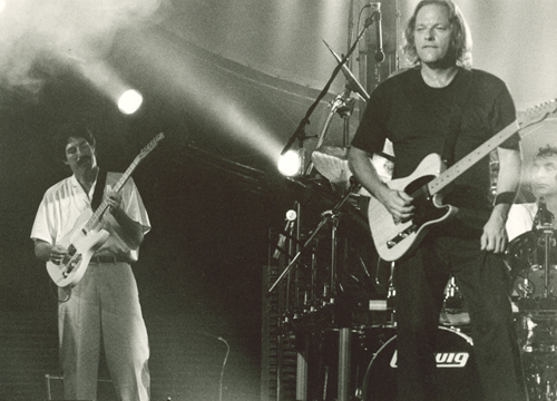 Paul Rappaport on stage with Pink Floyd’s David Gilmour and Nick Mason (Photo courtesy of Paul Rappaport Archives)