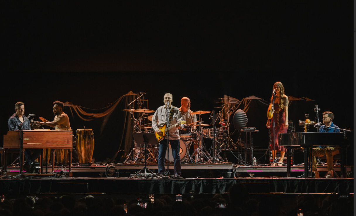 The hosts’ 20-song set was packed with hits and album cuts, largely culled from their estimable ’70s era catalog, beginning with an energetic start on “Take Me In Your Arms (Rock Me a Little While),” that showcased their two primary lead singers, founding Doobie Brothers‘ member Tom Johnston and Michael McDonald, whose soulful vocals added a unique alternative to the band when he joined in 1976. The eight-piece lineup on this tour also includes founding member and mainstay Pat Simmons as well as John McFee, a member since 1979.