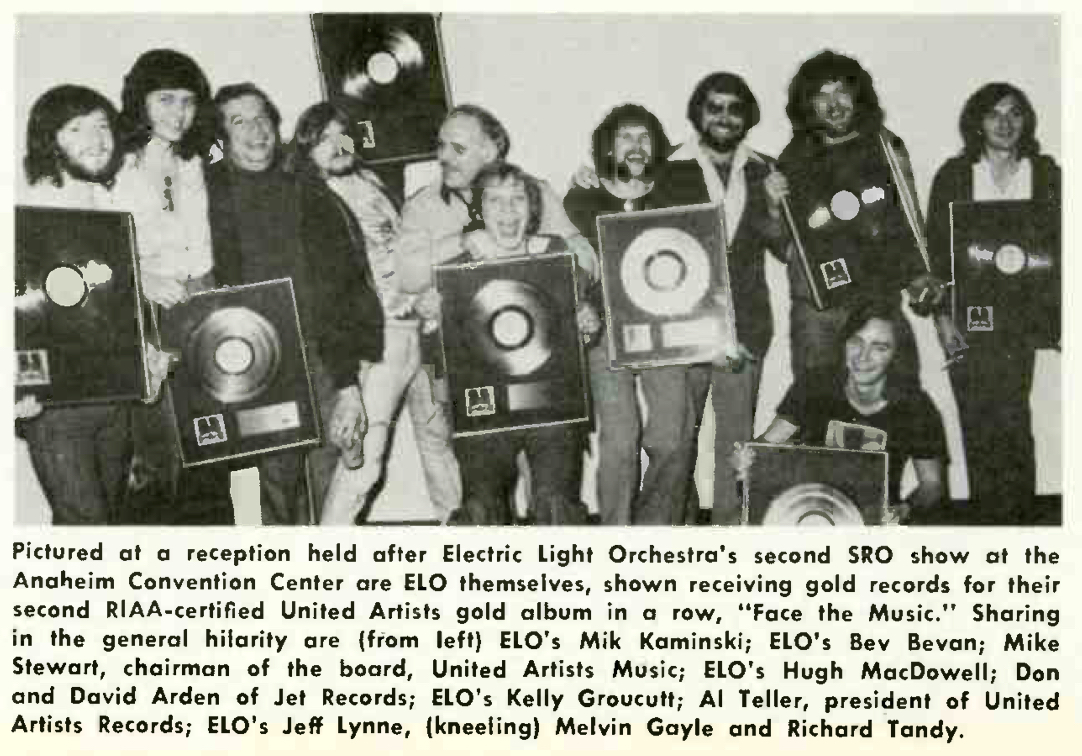 This photo of the band receiving gold records for their previous album Face the Music appeared in the March 6, 1976, issue of Record World