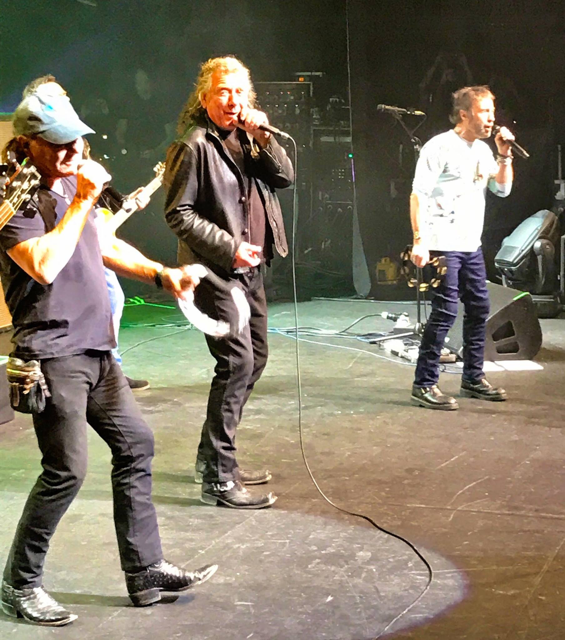 Brian Johnson, Robert Plant and Paul Rodgers together onstage in Oxford England on May 14, 2017 (via Rodgers’ Facebook)